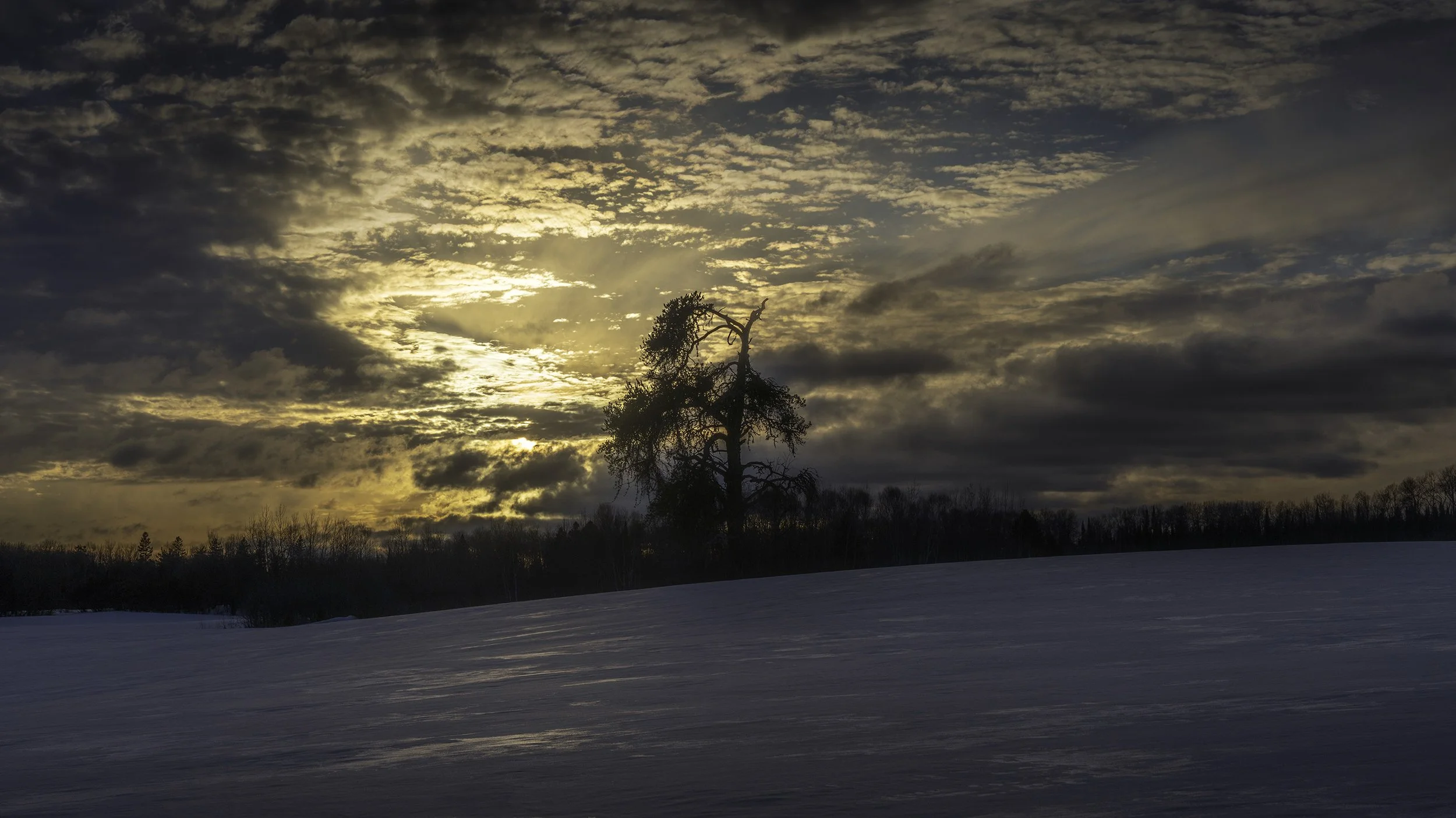 While driving home, the light on the horizon caught my eyes, and the layers of cliffs, snow, trees, and clouds looked like an awesome composition.